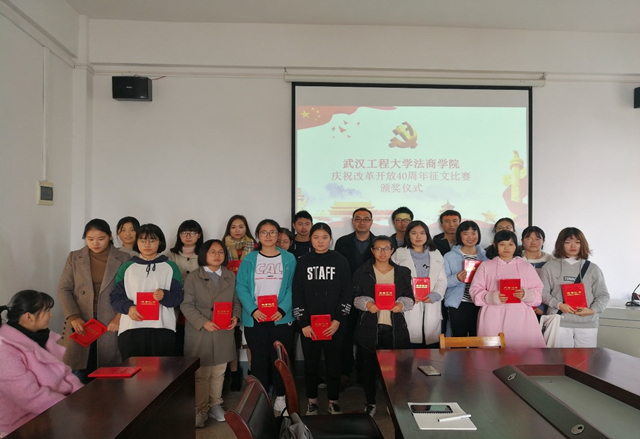 为庆祝改革开放40周年,缅怀党的光辉历史,坚定青年学生理想信念,更好的展现我院学生勇于改革奋进的时代精神,提升学生对国情的了解,加强当代大学生对理论学习的重视,进一步激发全院学生发扬我党优良传统、传承责任担当。11月13日,由中共华体会体育委员会举办的“不忘初心勇担当,青年建功新时代——庆祝改革开放40周年”征文比赛在法商学院311会议室落下帷幕。法商学院党委副书记、纪委书记、副院长刘念、法商学院团委书记郑睿以及法商学院党务干事兰海担任比赛评委。