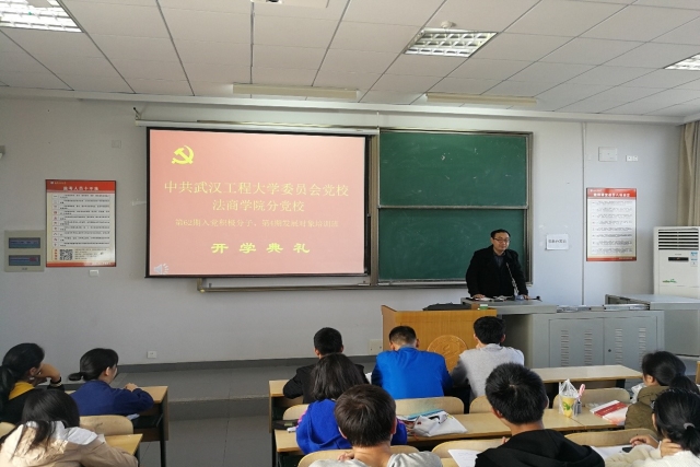 11月13日上午时分,法商学院2018年党校第62期入党积极分子、第四期发展对象培训班开班典礼在武汉工程大学流芳校区四教楼4517教室顺利召开!法商学院党委副书记、纪委书记、副院长刘念、法商学院党务干事兰海出席开班典礼,各年级培训学员参加了开班典礼,典礼由兰海主持。
