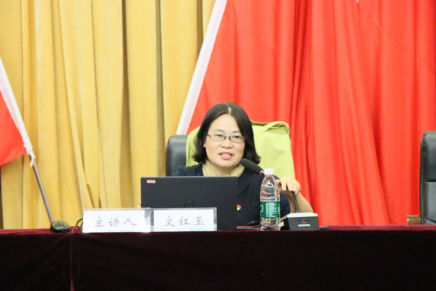 文红玉教授以《坚定理想信念,做新时代好青年》为主题,带来了一场内容丰富、精辟独到的专题报告。报告从党的建立史、党的发展史、党的成长史等几个方面介绍了中国共产党从苦难走向辉煌的历程,并深入探讨了“何为理想信念?”“理想信念意味什么?”“如何贯彻理想信念?”三个问题。文教授旁征博引、全面深刻地讲述了当代新青年坚定理想信念的时代课题,同时也讲述了中国共产党的独特优势以及青年的责任与担当。