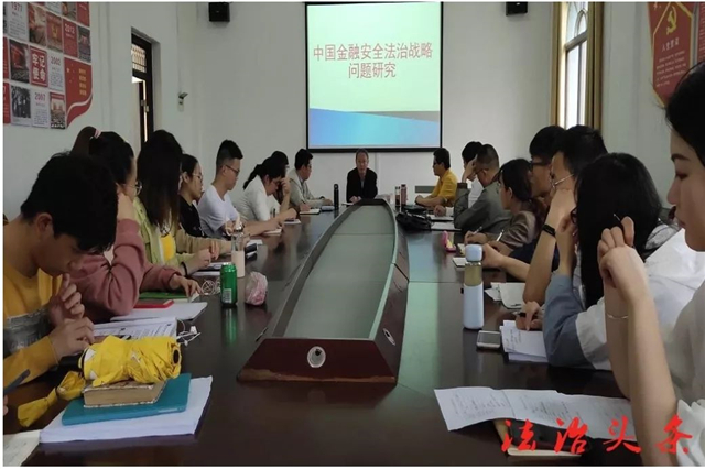 5月15日下午,由华体会体育主办的《中国金融安全法治战略问题研究》讲座在华体会体育举办。本次会议邀请金融刑法学创始人,中国行为法学会金融行为法律分会副会长兼秘书长、海南省法学会副秘书长刘建主讲,讲座由华体会体育院长金明浩主持,江汉大学法学教授田圣斌,华体会体育教授周灏,华体会体育副教授汪沂,《法治头条》行政主任江红,以及华体会体育的刘芬老师和学生参加了本次会议。会上刘建教授对中国金融安全存在的风险和问题进行了分析讲解,并提出完善金融安全法治建设的思考和建议。师生认真听讲,并踊跃提问,与刘教授作了交流。田教授点评后,金院长做了最后总结。