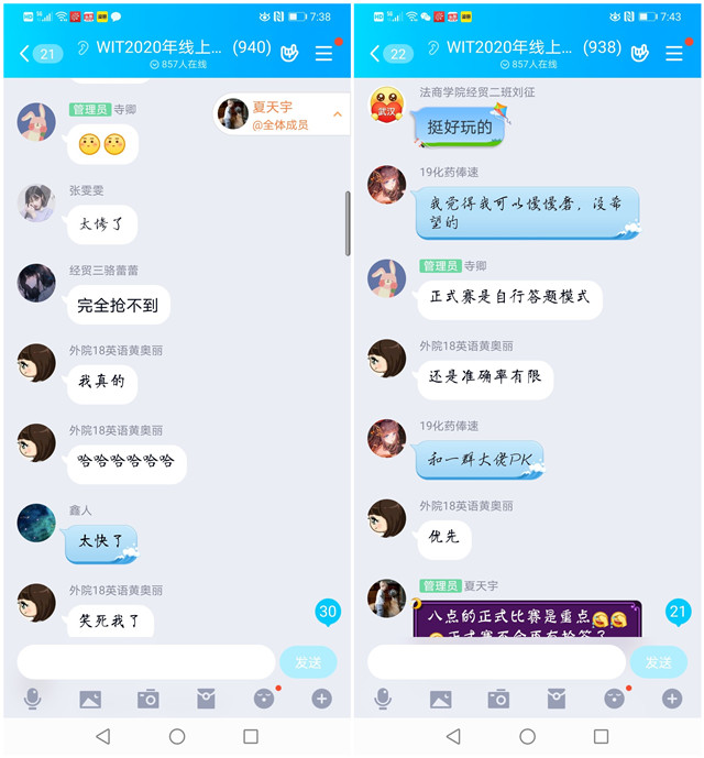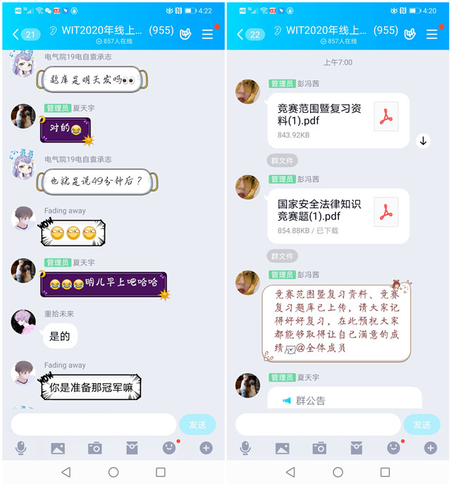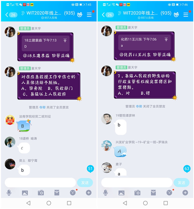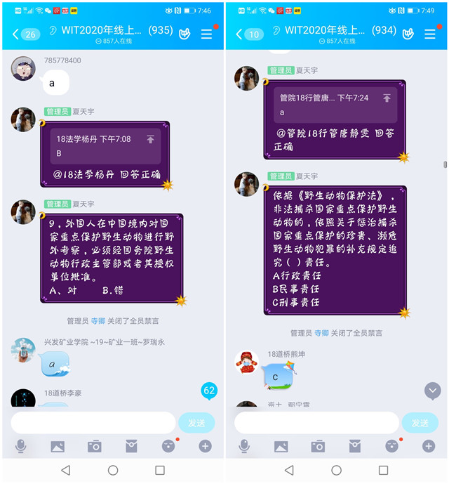 本网讯(通讯员 方程成)4月15日—23日,为深入学习宣传贯彻习近平新时代中国特色社会主义思想,坚持总体国家安全观,紧密结合新冠肺炎疫情防控形势与任务,深入宣传以习近平同志为核心的党中央关于疫情防控工作的决策部署,学工部、保卫部、法商学院联合举办2020年线上国家安全法律知识竞赛,来自全校各学院近千名学生参与了此次活动。通过一起集中学习讨论《国家安全法》《传染病防治法》《网络安全法》《突发事件应对法》《野生动物保护法》等国家安全法律法规;采用问答、抢答等多样化形式,做好赛前“预热”工作,形成全员学习“国家安全知识”的热烈氛围;正式比赛采用线上限时答题形式,参赛选手需在90分钟内完成100道选题(随机抽样、线上系统评分、成绩当场揭晓)。