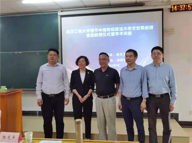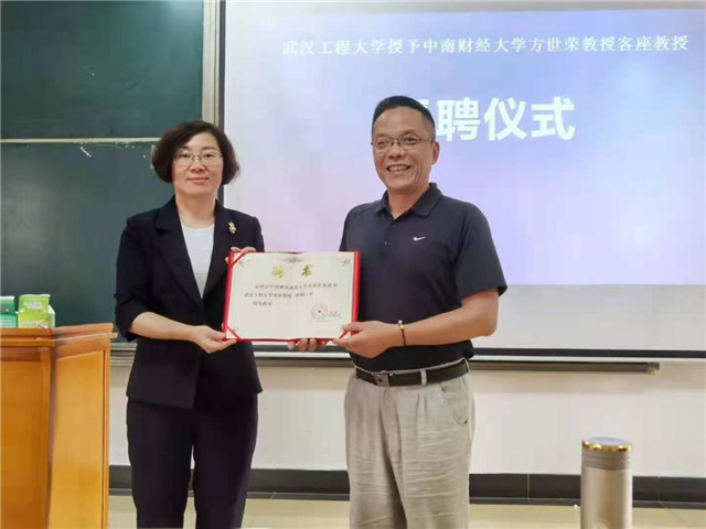 郑丹凤在致辞中对方世荣教授的加盟表示热烈欢迎,对方世荣教授的学术造诣表示高度赞扬,希望方世荣教授多来我校开展学术交流活动,将最前瞻的科研、教学思想引进来,把我校的老师、学生带出去,指导和促进我校法学学科、专业、科研高质量发展。授聘仪式上,郑丹凤代表学校为方世荣教授颁发了武汉工程大学客座教授聘书,校人事处处长鲁晓君宣读了聘书。