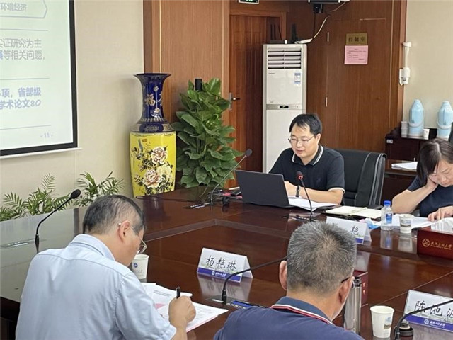 法商学院副院长付书科从学科方向与特色、学科队伍、人才培养、培养环境与条件四个方面详细汇报了我校应用经济学专业一级学科硕士点的基本情况。