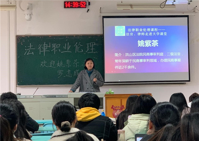 (通讯员 唐梅玲、吴琼)为进一步增强大学生的法律意识和法治观念,培育学生职业道德素养,2021年12月24日下午,法商学院“法律职业伦理课程——法官、律师走进大学课堂”在1410教室举行。本次交流课邀请了洪山区法院民商事审判庭姚紫茶法官、湖北成和诚律师事务所罗志成律师主讲,学院唐梅玲老师和四十多名研究生参加。