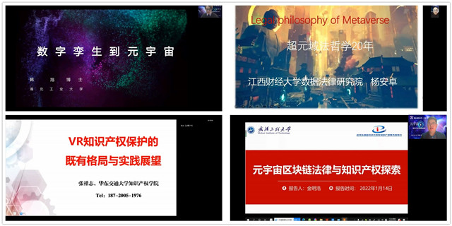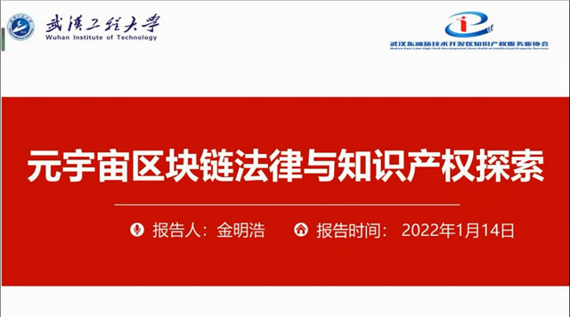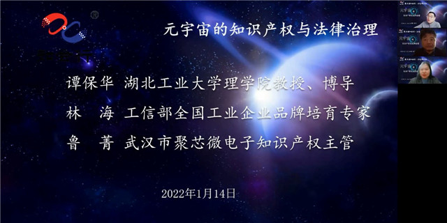 (通讯员 代江龙)1月14日,由湖北省知识产权局、武汉市市场监管局(市知识产权局)指导、华体会体育、湖北省知识产权培训(自贸区)基地、武汉知识产权研究会等单位主办的第五期“知会行·IP先锋沙龙”在线公开举行。本期活动聚焦“元宇宙的知识产权与法律治理”。来自武汉、南昌、襄阳、宜昌、西安、郑州、长沙、南宁、重庆、北京、上海、深圳等城市的300余位高新技术企业、高校科研院所、知识产权行业协会、服务机构代表相聚云端,在线参会。
