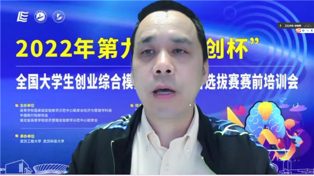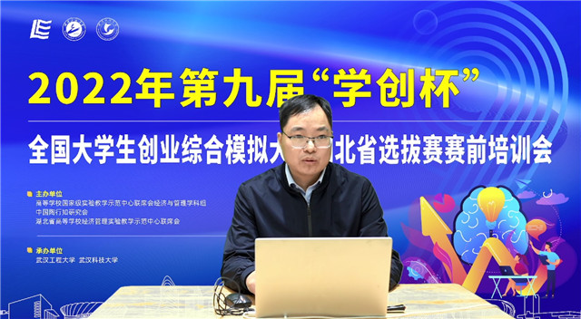 (通讯员 田嘉莉)为进一步做好第九届“学创杯”全国大学生创业模拟大赛(以下简称“学创杯”)湖北省选拔赛参赛工作,帮助指导老师和同学们了解大赛的政策、流程,5月1日,学校成功承办2022年第九届“学创杯”全国大学生创业模拟大赛湖北省选拔赛赛前培训会,会议采取线上直播方式进行。“学创杯”省赛主办单位湖北省高校经济管理实验教学示范中心联席会组长、湖北经济学院实验教学中心常务副主任陈新武教授,武汉大学经济与管理国家级实验教学示范中心副主任、“学创杯”湖北省赛组委会秘书长徐晓辉教授,支持单位贝腾教育发展集团湖北区总经理郑东琴,承办单位华体会体育副院长付书科教授,华体会体育经济学教研室副主任田嘉莉博士出席此次会议。