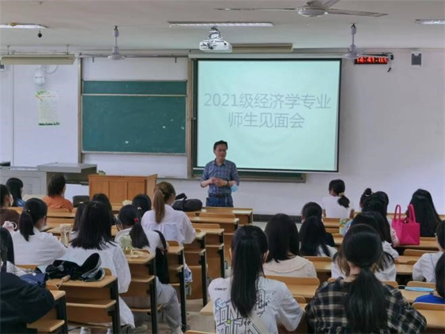 张艳副教授再次对2021级经济学专业的同学表达了欢迎,她仔细分析了经济学专业的考研与就业形势,要求同学们一定要踔厉奋发、笃行不怠绘就大学生涯精彩人生篇章。