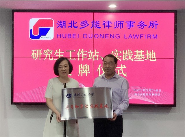 本网讯(通讯员 张晓萌)为贯彻落实党中央、国务院关于高校毕业生就业工作的决策部署,积极推进落实“访企拓岗”促就业专项行动,对接企业人才需求、深化校企合作、促进校企联动,5月24日下午,校党委副书记李志旭带队赴湖北多能律师事务所开展“访企拓岗”专项活动,并举办实践基地、研究生工作站及就业基地挂牌仪式。