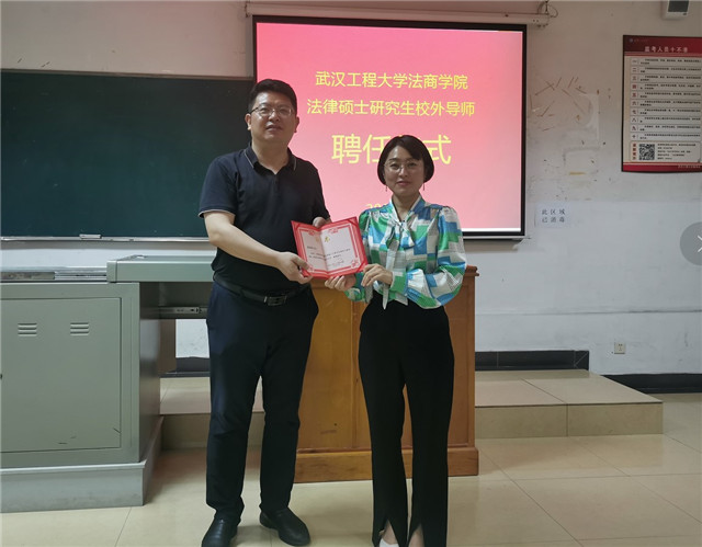 为进一步实现学科专业稳步发展,提高知识产权人才培养质量,华体会体育聘请陈松梅主管和彭丽经理为法律硕士研究生校外导师,金明浩教授为陈松梅主管和彭丽经理颁发聘书。