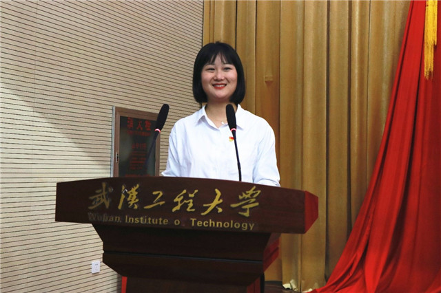 中国青年志愿者扶贫接力计划第24届研究生支教团成员、2018级本科生龚紫芹代表毕业生党员发言,她回顾自己入党的初心和大学期间的成长收获,“是党员的身份砥砺着我积极担当责任,在为人民服务的道路上一往无前”。她号召全体毕业生党员谨记党员身份,时刻追求进步,在青春的赛道上奋力奔跑,争取在各自的工作领域发光发热,不辜负党组织的教育,不辜负母校的培养,不辜负老师的教诲,做社会的栋梁,为学校争光,为学院添彩。