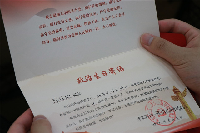 活动中,学院为毕业生党员代表送上精心准备的专属礼包,并为6月入党的21名党员共庆党的政治生日,满满仪式感将活动气氛推向高潮。