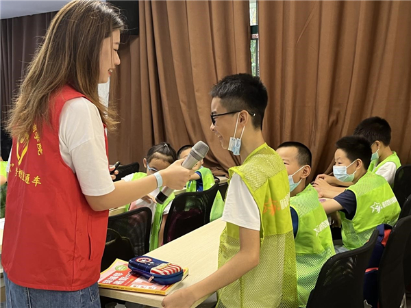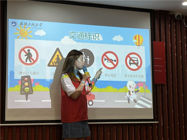 学院“1+X”梦想直通车志愿服务队的志愿者们针对青少年年龄阶段身心特点和成长需求,以交通安全和青少年防拐安全为主要内容,制作图文并茂、浅显易懂的漫画法治宣传PPT,并通过趣味游戏互动形式带领小朋友们认识安全标识,给青少年种下一颗“知法、懂法、守法”的种子。