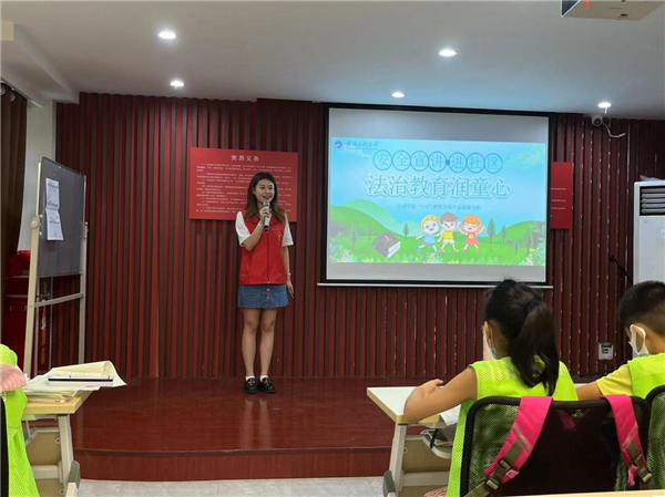 (通讯员 章文杰)为深入学习习近平法治思想,进一步深化青少年法治宣传教育,在青少年心中种下一颗“知法、懂法、守法、用法”的种子,7月11日,华体会体育联合武汉市梨园街道东湖社区开展“安全宣讲进社区·法治教育润童心”主题普法宣传活动,学院知识产权教研室副主任董维、团委指导老师章文杰、普法宣讲团学生志愿者、梨园街道东湖社区工作人员以及20名青少年小朋友参加本次社会实践活动。
