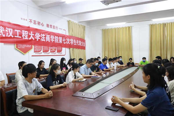 本网讯(通讯员 章文杰)9月29日下午,法商学院第七次学生代表大会在学院311会议室召开,学院党委书记杨克平、各年级辅导员以及68名学生代表参加了本次会议。会议由团委指导老师章文杰主持。