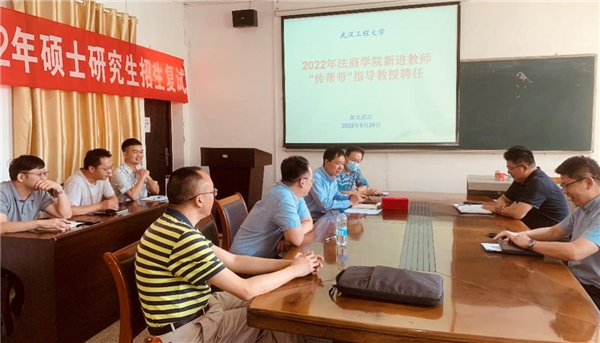 本网讯(通讯员 张晓萌)为落实我校青年教师培养制度,助力新进教师提高教学水平与科研能力,2022年9月29日下午,法商学院教师发展中心组织召开新进教师“传帮带”活动启动会。会议对新进教师的指导工作进行具体安排,并举行指导老师聘任仪式。法商学院党委书记杨克平、院长金明浩、副院长付书科,教师发展中心主任李兆亮、韩可卫教授、周颢教授以及六位新进教师参加会议。