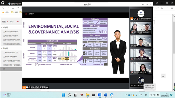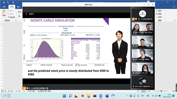决赛前,各团队提前提交英文研报、英文PPT和PPT演绎视频,组委会聘任评委对研报和PPT给予评分;决赛中,每个团队英文讲解PPT,三位评委提问,同学们回答问题,评委评分,组委会计算出答辩成绩;最终以三项评分,评出每个团队的最终成绩。此赛事充分考量了学生们运用证券投资、财务分析、风险控制等专业知识对上市公司做出投资决策的能力,体现出团队成员通力协作的能力。我校五位同学在决赛中的表现,充分展现出扎实的专业知识功底和团队的协作默契。