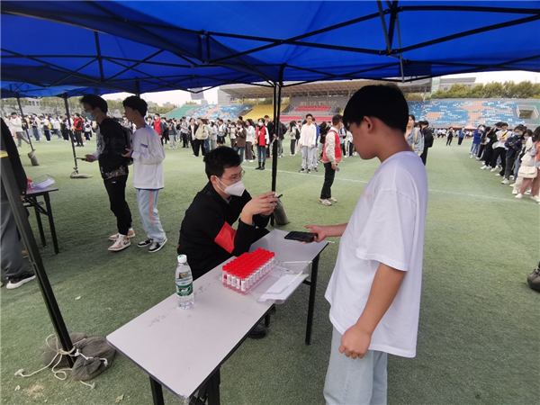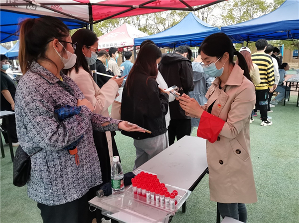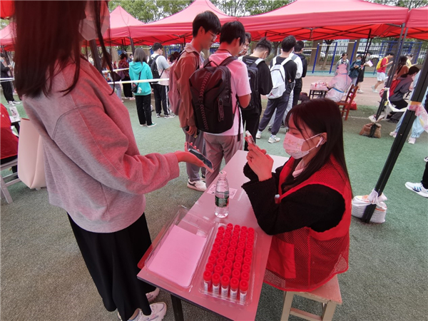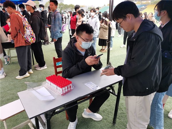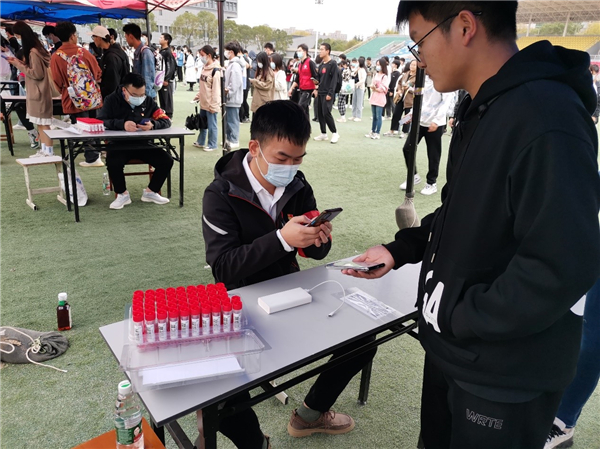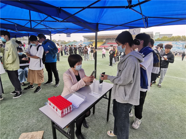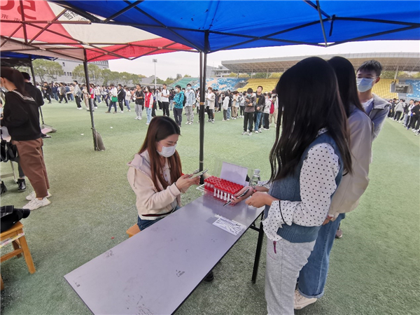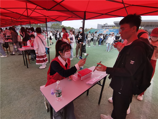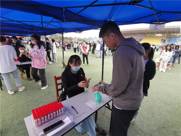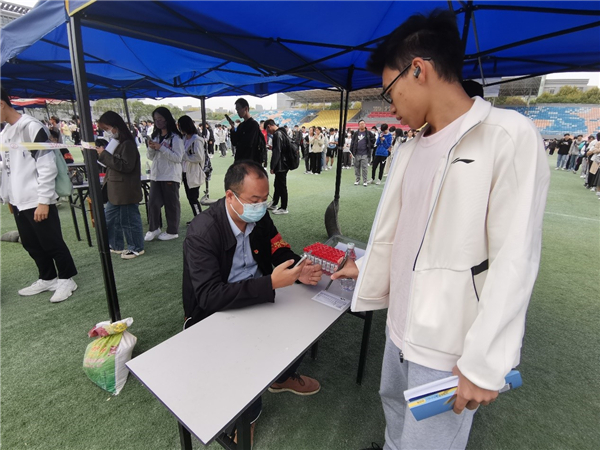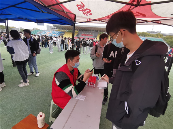 本网讯(通讯员 王祥礼)为深入学习贯彻党的二十大精神,进一步发挥党员先锋模范作用,同心抗疫,众志成城,共护平安校园环境,10月25日下午,法商学院教工党支部15名教师党员和学生党支部25名学生党员结对共建,在流芳校区运动场协助学校开展核酸检测工作。