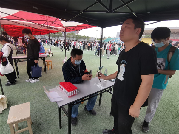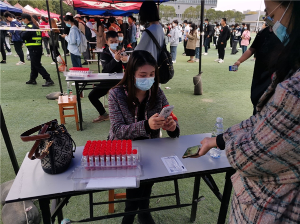 现场,师生党员们坚守岗位、分工协作、细致认真,熟练扫码、采样,参与维护现场秩序,从15:00到18:00,共采集21536份师生核酸样本,圆满完成采样工作。