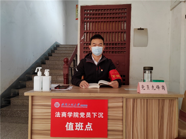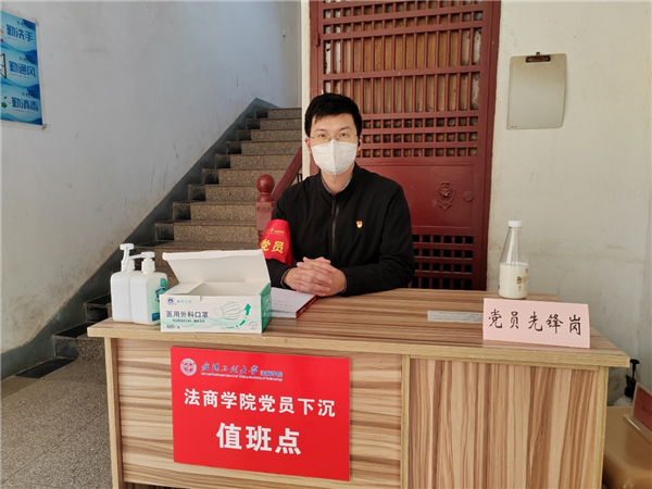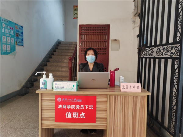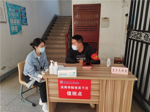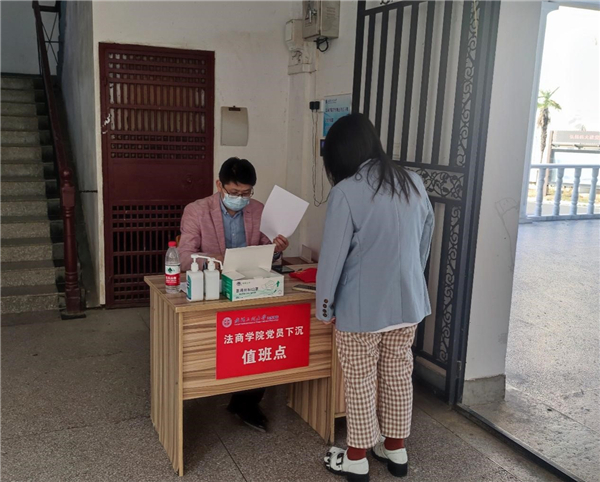 本网讯(通讯员 王祥礼)为进一步落实疫情防控要求,压实防疫责任,充分发挥学院教师党员先锋模范作用,近日,法商学院组织开展教师党员下沉集中行动,学院广大教师党员挺身而出,迎难而上,在疫情防控工作中亮身份、做表率,带头坚守在基层一线,以实际行动践行共产党员初心和使命,让党旗飘扬在战“疫”前沿,党徽闪烁在抗“疫”一线。
