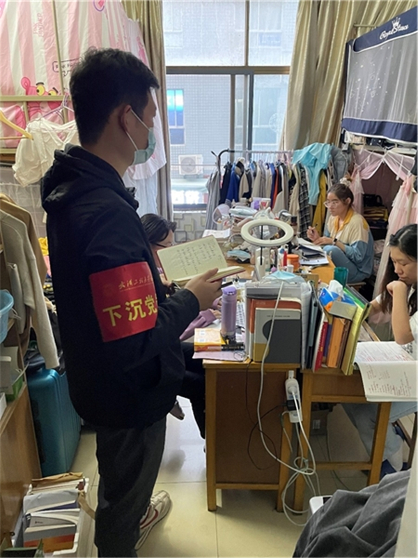 疫情防线在哪里,战“疫”一线就在哪里。近段时间,学生宿舍成为学生学习、生活的主要场所,宿舍空间较小、人员聚集密度大,增加了防疫难度。学院积极发动教师党员深入学生宿舍一线,排查安全隐患,了解学生学习状态,开展心理疏导,并提醒同学们在寝室注意安全、维护公共卫生、做好自我防护、调整学习心态,健康生活。同时,学院利用QQ群、微信公众号等平台积极宣传防疫知识,确保学院广大师生在防疫期间不惹乱子、不出岔子。