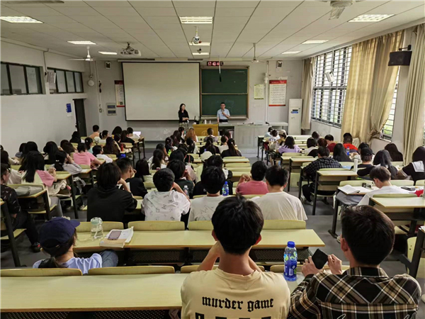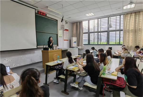 帅颖老师从我校涉外法治人才培养的总体情况、相关举措、成效经验以及下一步的人才培养计划等方面进行了全面介绍,尤其对双语课程与专业外语课程的课程设置与学习方法进行了详细介绍,并对学生未来择业提出了积极建议。