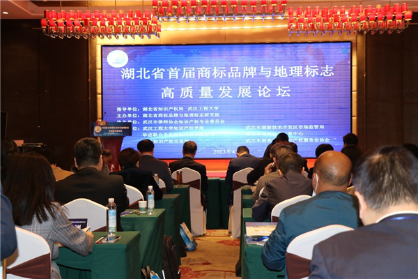 本网讯(通讯员 代江龙)2023年4月23日,由我校和湖北省知识产权局指导,湖北省商标品牌与地理标志研究院主办的“湖北省首届商标品牌与地理标志高质量发展论坛”在武汉举行。本次会议以“商标品牌与地理标志助力构建新发展格局先行区”为主题,邀请了来自湖北省市区商标地标一线的行政机关领导、专家学者、协会负责人、企业和服务机构代表等100余人参会。大会由武汉工程大学校党委常委、纪委书记方文海致辞,省知识产权局党组书记、局长刘治田出席会议并发表讲话。研究院院长金明浩和名誉院长彭泉主持大会,研究院副院长代江龙汇报湖北省商标品牌与地理标志研究院筹建情况及工作规划。