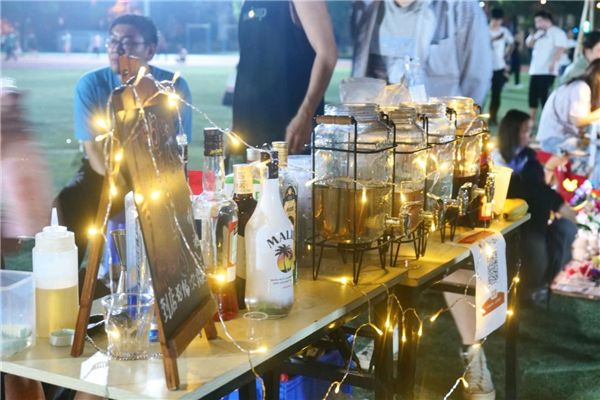 在舞台一侧的“音乐节集市”,学生社团自发将自制手工艺品、社团特色物品进行展示,形成了一道特色靓丽的风景线。