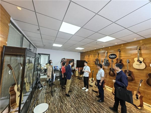 武汉研创中心的乐事吉他创始人周兴培作为我校2018届优秀毕业生代表,现已是拥有千万资产的企业老板,他对学院一行的到来表示热烈的欢迎,并讲述自己作为大学生创新创业的整个发展历程,详细介绍企业规模、实习实践、人才需求等情况。