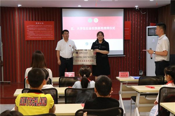 在热烈的掌声中,法商学院(知识产权学院)党委副书记孙勇与东湖社区党委书记刘汉昇共同为“大学生社会实践与志愿服务基地”揭牌。