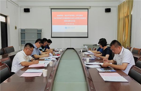 本网讯(通讯员 王祥礼)为深入开展学习贯彻习近平新时代中国特色社会主义思想主题教育,扎实推进调查研究取得实效,7月12日上午,法商学院(知识产权学院)在311会议室召开学习贯彻习近平新时代中国特色社会主义思想主题教育调研成果交流会。学校主题教育第二联络组组长、校党委副书记郑丹凤,副组长、纪委副书记任兵,校团委副书记邓欢到会指导,学院领导班子成员参加会议。会议由学院党委书记杨克平主持。