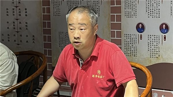 图三 陈军海与实践团讨论赤壁青砖茶新发展战略