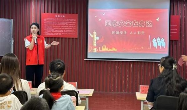 开通普法小课堂,守护少年助成长。学院“1+X”梦想直通车志愿服务队志愿者用通俗易懂的语言为青少年讲解国家安全相关知识,通过贴近青少年学习生活的鲜活案例,用精心准备的视频、PPT和绘声绘色的互动环节,把原本冷冰冰的法律条文,以最容易让学生接受的方式浸润到青少年的心田,给青少年们种下一粒“国家安全,人人有责”的种子。