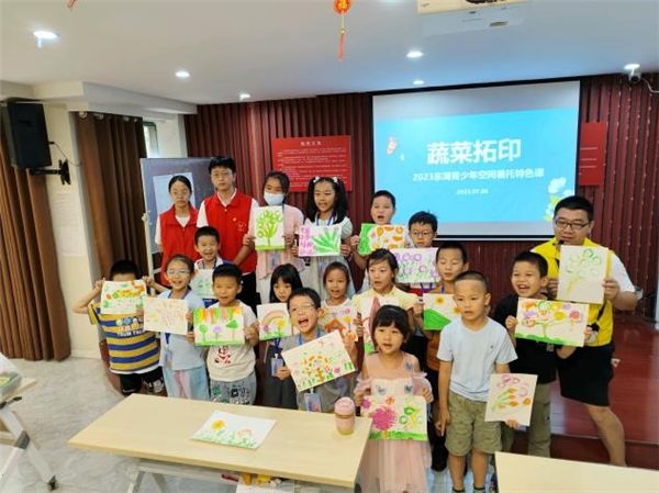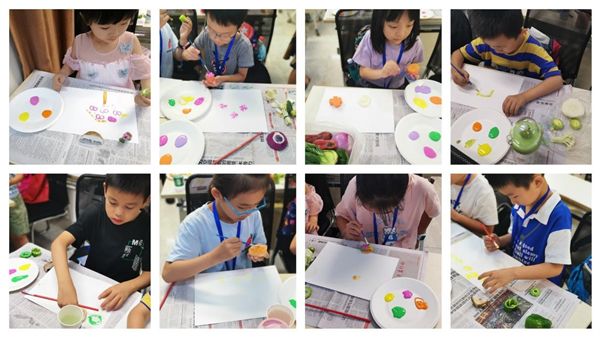 “蔬香满印,拓趣无限”蔬菜拓印手工实践活动助你成长,胡萝卜、苦瓜、青椒、莲藕、上海青、西芹……,课堂充满新鲜蔬菜的芳香,志愿者将不同的蔬菜切割呈现出独一无二的“截面”,让孩子们观察形状,他们发现苦瓜变成了带齿的圆轮,秋葵变成了镂空的花瓣,莲藕变成了七星瓢虫的身体……孩子们将这些蔬菜蘸上了自己喜欢的颜色,利用蔬菜各式各样的形状创作出色彩斑斓的作品。