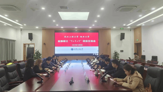 (通讯员 宋佳丽 鄢海丝 管娜 储肖阳)10月8日,武汉工程大学-梅西大学金融硕士“1+1+1”项目交流会在综合楼103举办。梅西大学商学院经济与金融学院副教授迟晶、研究生院院长熊伦、国际交流与合作处处长彭石玉、教务处副处长张峰、法商学院(知识产权学院)全体领导班子成员和部分教师代表参加了本次交流会。
