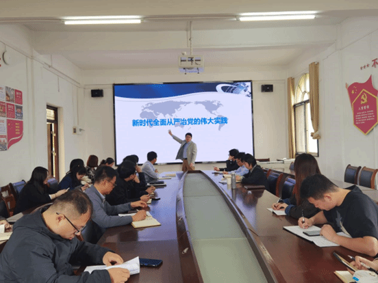 杨克平以《新时代全面从严治党的伟大实践》为题,以如何永葆先进性和纯洁性、永葆青春活力,如何永远得到人民用户和支持,如何实现长期执政三个问题为切入点,从党要管党 坚持严的主基调不动摇,从严治党 产生了全方位深层次影响,坚持不懈 全面从严治党向纵深推进三个方面结合鲜活实事、生动案例和详实数据为与会人员讲授廉政专题党课。他强调要时刻保持反腐政治定力,不断实现不敢腐、不能腐、不想腐一体推进的战略目标,全面从严治党永远在路上。要求各教研室党支部落实好支部“三会一课”和教职工政治理论学习制度,将党风廉政建设和师德师风教育融入其中,不断锤炼党员党性、凝聚支部战斗力,充分发挥教师党支部的战斗堡垒作用和党员教师的先锋模范作用。