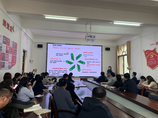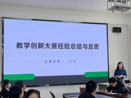 会上,由我院教师汪沂副教授进行经验分享,汪沂副教授曾获武汉工程大学“第三届教学创新大赛一等奖”“第二届教学创新大赛三等奖”,她结合自己两次参与教学创新大赛的经验,分别从教学创新大赛与一流课程申报的对比、大赛提交材料与比赛环节、创新成果报告的撰写、课堂实录与现场报告等五个方面,对教学创新大赛的相关事项进行详细地分析与介绍。