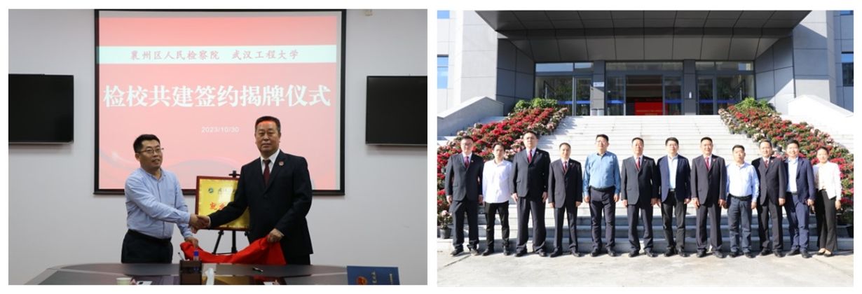 签约及授牌仪式结束后,武汉工程大学一行参观襄州区检察院并合影留念。双方将以此次实习实践基地和就业基地挂牌为契机,强化校检合作的广度与深度,共同推进法律实务人才培养与学术交流合作。