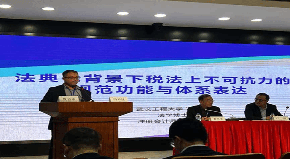 青年教师冯铁拴博士应邀参加了本次会议,并在大会主会场之青年财税法论坛环节作了《法典化背景下税法上不可抗力的规范功能与体系表达》的报告。该报告指出,不可抗力制度虽源于民事立法,其已影响税法适用,应确立税法层面的不可抗力概念条款、完善不可抗力税收减免条款、增设不可抗力税法责任条款,以提升税法不可抗力规范的体系性与科学性。