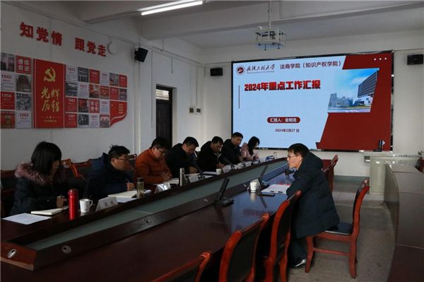 院长金明浩代表学院汇报了2024年工作目标、重点工作、可行性方案以及需要学校支持的事项。将学院建设成为在全国有一定影响,湖北省内居于前列,“法商融合”“新文科新工科交叉融合”“开放创新”特色鲜明的高水平教学研究型学院。方文海逐项指导,并提出具体意见建议。