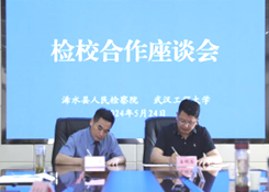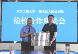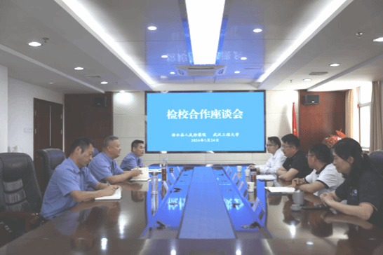 浠水县人民检察院党组副书记、副检察长周志锋致欢迎词,对武汉工程大学一行人的到来表示欢迎与感谢,并介绍了浠水县检察院的基本情况。徐洪斌检察长针对校检共建的合作内容提出了建议,希望围绕乡村商标注册问题展开深度合作,既为落实国家“乡村振兴”战略服务,也为更加充分保障乡民合法权益。同时,欢迎武汉工程大学学生在检察院开展实习实践活动,共同培养检察实务人才,今后将在学术交流合作、校检人员讲学交流等方面挖掘并拓展更多地合作渠道,展开持续密切的合作。