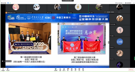 据悉,第二届中国研究生金融科技创新大赛全国共有120个培养单位的291支队伍1780位师生参赛,初赛以“PPT视频讲解”方式进行线上评审,共81支队伍进入预决赛,预决赛以“路演+答辩”的方式进行线上评审,共24支队伍进入总决赛。我校“三个臭皮匠队”荣获全国二等奖,“金融大分队”和“伍柒”两支队伍的作品获得全国三等奖,系湖北省获国家级奖励最多的高校,学校获得此次大赛“优秀组织单位”称号。