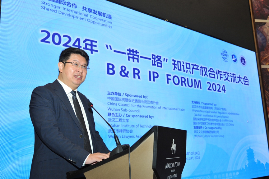 (通讯员 代江龙)2024年10月24日,由武汉工程大学与武汉市贸促会、武汉市律师协会共同举办,国际保护知识产权协会(AIPPI)中国分会、国际许可贸易工作者协会(LES)中国分会、武汉市市场监督管理局(市知识产权局)提供支持的“2024年‘一带一路’知识产权合作交流大会”在武汉召开。大会以“加强国际合作、共享发展机遇”为主题,汇聚了来自亚洲、欧洲及拉美等地11个国家和地区的众多中外嘉宾,以及全国范围内的相关企业、创新主体、政府部门、行业协会、高校院所等约200名代表参加。