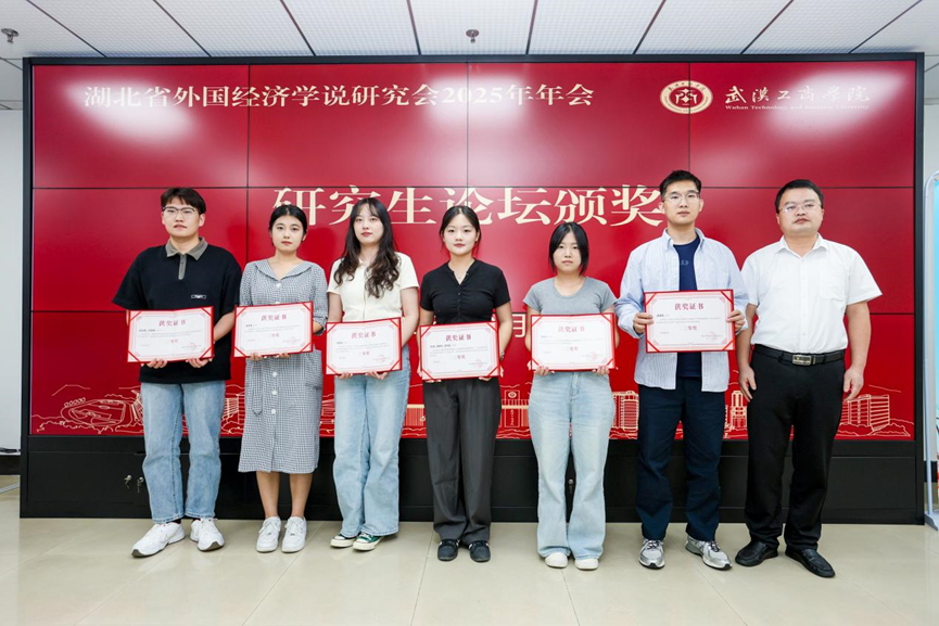 在本次年会的学术成果评选中,华体会app研究生表现突出:吴志鹏、朱家豪、惠萌如、肖文瑾、袁双桂、朱丽雯、张岩、田新叶、熊烨 9 位同学凭借优秀的学术表现,荣获湖北省外国经济学说研究会 2025 年度优秀论文二等奖。