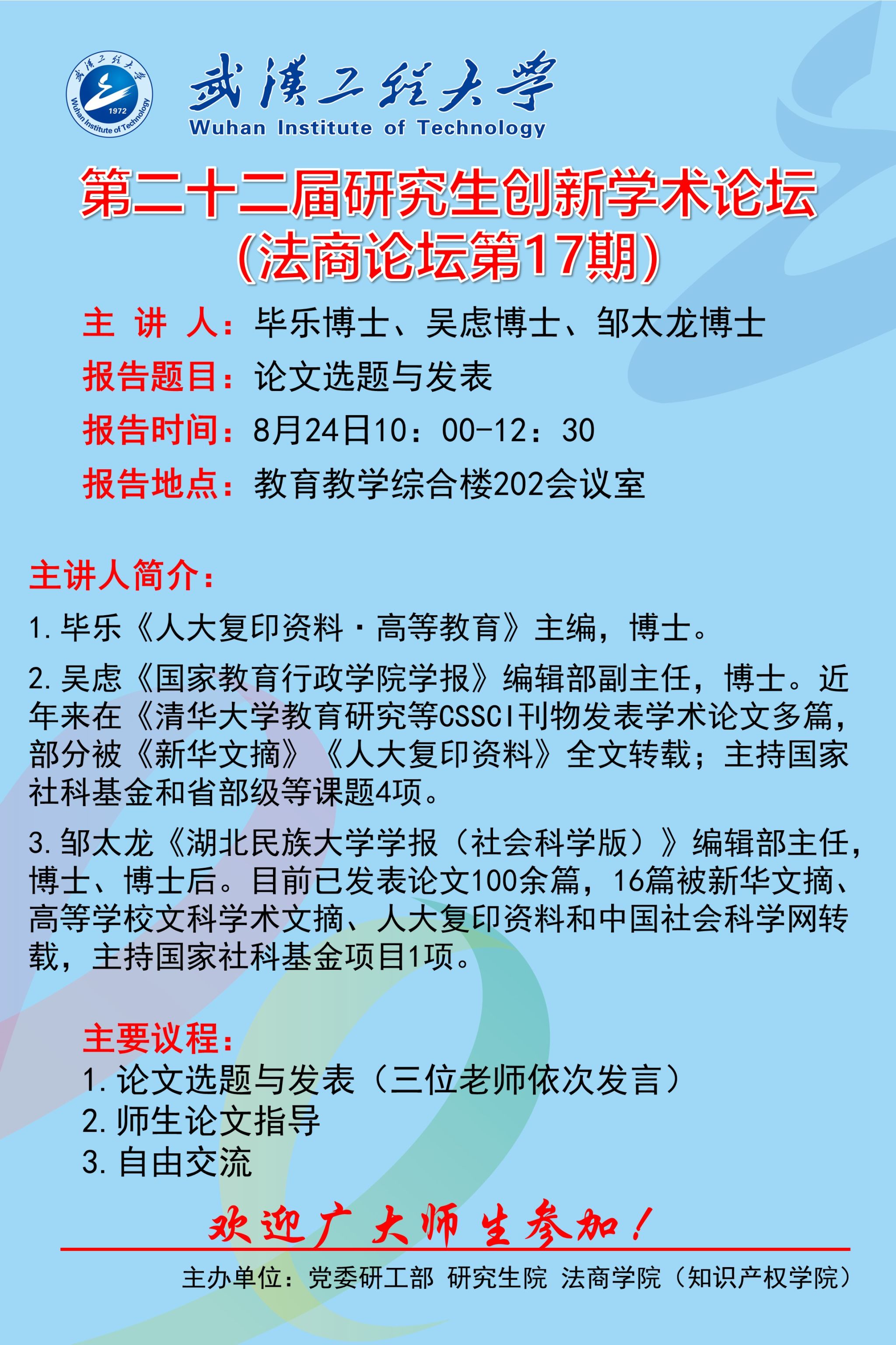 上一条:【研究生创新学术论坛】股票价值分析与金融衍生产品 下一条:【研究生创新学术论坛】如何撰写科技论文?