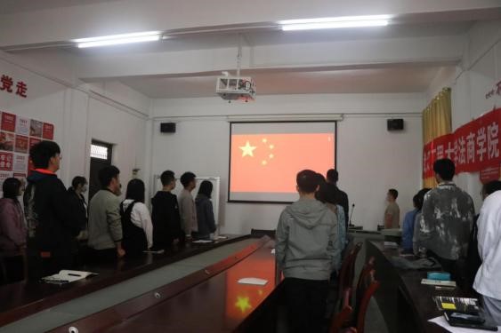 上午9时,大会在慷慨激昂的国歌声中拉开序幕。学院团委负责人章文杰致开幕词。
