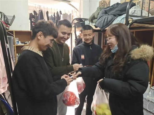 “天寒不冷备考心 考研慰问添信心”,12月25日晚,2017级辅导员刘敏到宿舍慰问考研学子,为他们送上精美小礼品,并预祝同学们考研顺利,金榜题名。