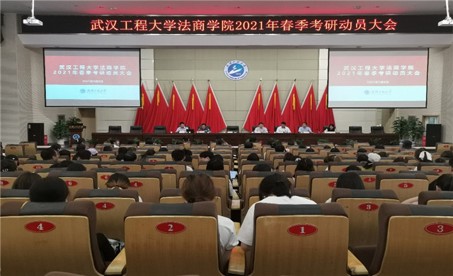 本网讯(通讯员兰海)5月8日,法商学院在流芳校区四教多功能报告厅召开2021年春季考研动员大会,法商学院党委书记杨克平、院长金明浩、副院长付书科、各教研室主任、辅导员及2018级全体本科生参加动员会。会议由院党委副书记严敏主持。