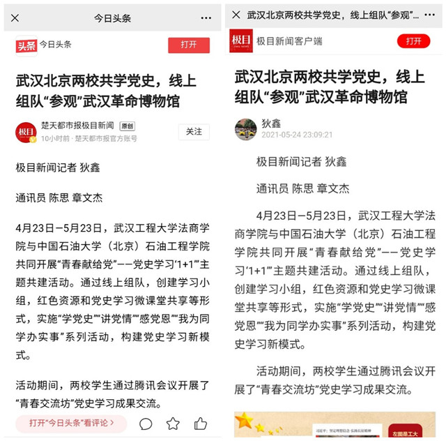 华体会体育的同学们前往武汉革命博物馆和毛泽东故居,与石油大的同学们线上分享党史学习教育体会,争做党史学习教育“网红博主”。