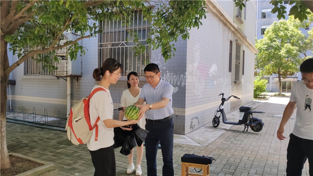 “今天正好是大暑节气,学院送来的慰问物资就像是炎炎夏日的一股清凉,谢谢学院一直牵挂着我们”。2018级周欣悦同学激动地说。同为2018级的汪小康同学也感慨道,“吃着学院送来的西瓜,既甜在嘴上,也甜在我们心里,我们都真切体会到了浓浓关爱”。