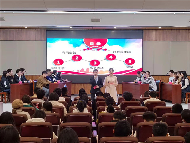 本网讯(通讯员张荣雪、王祥礼)近日,法商学院在图灵报告厅举办第五届党团知识竞赛决赛,感悟百年党史,坚定理想信念。法商学院团委指导老师王祥礼、2021级本科生辅导员刘敏、材料学院2021级本科生辅导员芦梦荻以及学院团委学生会成员和2021级新生参加活动,活动由徐俊熙、李祁苗主持。